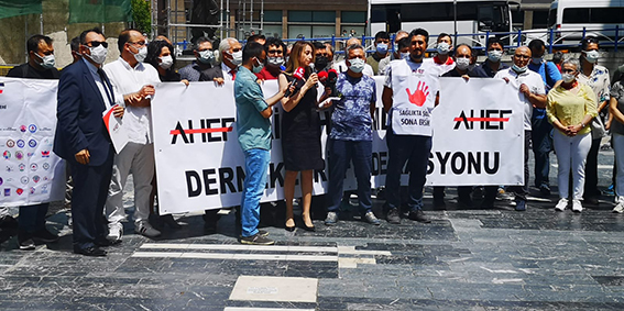 AHEF’ten yapılan açıklamada; “18 aylık pandemi döneminde onlarca sorun yaşadık. Bunları 3 yılda Sağlık Bakanlığı yetkilileri ile yüz yüze yapılan 9 ayrı toplantıda Bakan Yardımcısı, Kurum Başkanı, Başkan Yardımcısı düzeyine 6 ayrı rapor, bir miting ve yüzlerce haberle anlattık. Bakanlığın çoğu sorunu görmezden geldiğini, meslek hastalığında illiyet bağı arandığı, şehitlik payesi verilmemesi, ek ödemenin 14 ayda sadece 6 ay şartlı bir şekilde ödenmiş olması, koruyucu malzeme verilmeyişi, il müdürlüklerinin yaptığı mobingler, esnek çalışmanın verilmeyişi, yıllık izinlerin engellenmesi gibi birçok sıkıntının üstüne yeni sözleşme ödeme yönetmeliği de tuz biber oldu” dendi.