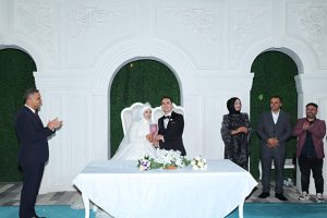 Başkan Hanifi Toptaş’ın kıydığı nikâhla Elif Korkmaz ve Emrah Kelek çifti, hayatlarını bu özel tesiste birleştirdi.