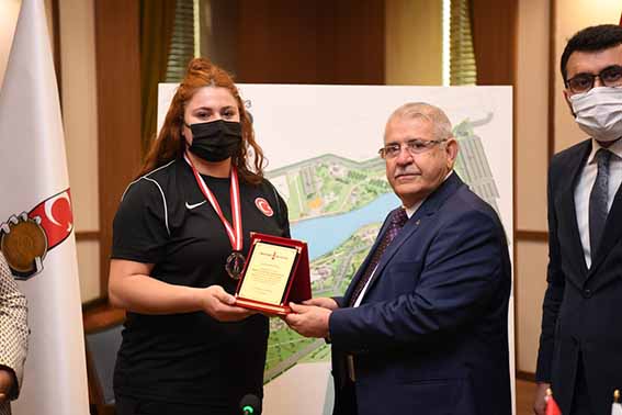 “Kahramanmaraş’ta ülkemizi temsil eden çok sayıda sporcumuz var, özellikle ata sporumuz güreş dalında. Artık diğer branşlarda da hem şehrimizi hem ülkemizi temsil eden sporcularımız var. Bunlardan bir tanesi Melike kızımız. Gençlerde Avrupa Şampiyonluğu, büyüklerde de çok yakın bir zamanda Rusya’da yapılan Avrupa Şampiyonasında üçüncülüğü elde etmiş bir kızımız. Kendisi Şahinkaya Mahallemizde beden eğitimi öğretmenliği yapıyor ve çalışmalarına da devam ediyor. Amacı da 2024’te yapılacak olimpiyatlarda ülkemizi temsil etmek. Biz kendisine bütün sportif alanlardaki çalışmalarında başarılar diliyoruz. İnanıyoruz ki ülkemizi daha iyi noktalarda temsil edecek, şampiyonluklar elde edecek. Biz de bu bağlamda kendisini Belediyemize davet ettik, minik hediyelerimiz olacak. Umuyorum bu motivasyonla daha çok çalışır, daha çok dereceler alır. Bu arada kendisini yetiştiren ailesine, babası bizim mesai arkadaşımız Ali Bey, annesi hanımefendiye de çok teşekkür ediyorum böyle ülkemize değer katan bir evlat yetiştirdiği için. Sayın Milletvekilimiz Habibe Öçal Hanımefendi de katılımıyla bizleri bugün onurlandırdı teşekkür ediyorum. Kızımıza bir kez daha muvaffakiyetler diliyorum.”