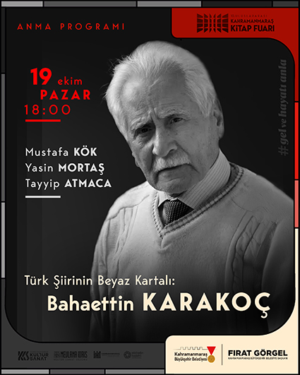 Kahramanmaraş’ın yetiştirdiği en önemli edebiyatçılardan Bahaettin Karakoç, vefatının yıl dönümü dolayısıyla 19 Ekim Pazar günü 10. Uluslararası Kahramanmaraş Kitap Fuarı’nda düzenlenecek programla yad edilecek. KAFUM’da düzenlenecek program saat 18.00’da başlayacak.