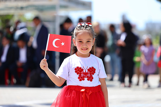 Program, saygı duruşu ve İstiklal Marşı’nın okunmasıyla başladı. Törende ayrıca, geçtiğimiz günlerde Ayser Çalık Ortaokulu’nda yaşanan menfur saldırıda hayatını kaybeden Ayla öğretmen ve öğrenciler unutulmadı. Kur’an-ı Kerim tilaveti ve dualarla anılan kayıplar, törende duygusal anların yaşanmasına neden oldu. Günün anlam ve önemine ilişkin yapılan konuşmalarda, çocukların geleceğin teminatı olduğu vurgulanırken, milli egemenliğin ve bağımsızlığın önemi bir kez daha hatırlatıldı. Öğrenciler tarafından okunan şiirler büyük beğeni toplarken program, öğrencilerin sergilediği renkli performanslar ve gösterilerle sona erdi.