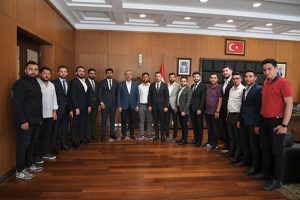 Kahramanmaraş Büyükşehir Belediye Başkanı Hayrettin Güngör, AK Parti Kahramanmaraş Gençlik Kolları İl Başkanı Feyzullah Eren Aşçı ve ilçe başkanlarını makamında ağırladı. Ziyaretten duyduğu memnuniyeti ifade eden Başkan Hayrettin Güngör, “Gençlik Kolları İl Başkanı Feyzullah Eren Aşçı ve ilçe başkanlarını misafir ettik. Teşkilatımızın çalışkan başkanlarını ağırlamak ve onların enerjilerinden istifade etmek bizlere de iyi geldi. Gençlik çalışmalarımızı, şehrimizdeki gençlerimize yönelik ilave nasıl çalışmalar yapabiliriz bunu konuştuk. Nazik ziyaretleri için kendilerine teşekkür ediyorum” ifadelerini kullandı.