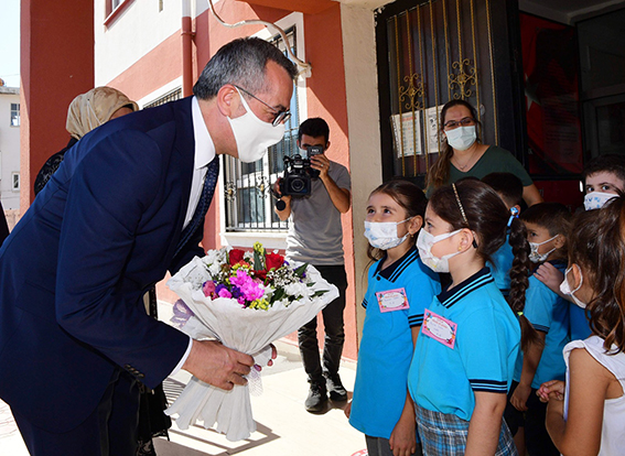Yüz yüze eğitimin ilk gününde minik öğrencilerle bir araya gelen Büyükşehir Belediye Başkanı Hayrettin Güngör, “Yüz yüze eğitim başladı. Öğrencilerimizin, yavrularımızın mutluluğunu paylaşıyoruz. Tüm öğrencilerimize başarılar diliyorum” ifadelerini kullandı. Kahramanmaraş Büyükşehir Belediye Başkanı Hayrettin Güngör, 2021 – 2022 eğitim öğretim yılında yüz yüze eğitime başlayan öğrencilerle bir araya geldi. Duraklı Mahallesi’nde bulunan Şehit Mıllış Nuri İlkokulu’na gerçekleştirilen ziyarete İl Milli Eğitim Müdürü Yusuf Kahraman da katıldı. Eşi Leyla Güngör ile sınıfları ziyaret ederek dondurma ikramında bulunan Başkan Hayrettin Güngör, “Okullarımızın tekrar yüz yüze eğitime başlamasından memnuniyet duyuyoruz. Tüm Milli Eğitim camiasına, okullarımızın yöneticilerine ve öğretmenlerimize yeni eğitim öğretim yılının hayırlı olmasını diliyorum. Öğrencilerimize, yavrularımıza da zihin açıklığı ve başarılar diliyorum” ifadelerini kullandı. Tedbirlerin Önemine Dikkat Çekti Başkan Güngör açıklamasının devamında pandemi kurallarının önemine dikkat çekerek, “İki yıldır ülkemizi ve dünyamızı derinden etkileyen pandemi süreci dolayısıyla okullarımız uzaktan eğitim vermek durumunda kaldı. Ancak hamdolsun, bu süreçte Türkiye’mizin alt yapısının ne kadar güçlü olduğunu gördük. Bugün çocuklarımızın okullarıyla, arkadaşlarıyla yeniden buluşmasının mutluluğunu yaşıyoruz. Maske, mesafe ve temizlik noktasında okullarımızda her türlü tedbir alınmış vaziyette. Yavrularımız da son derece hassas davranıyorlar. Kurallara uyduğumuz müddetçe, okullarımız inşallah açık kalmaya devam edecektir. Öğretmenlerimize, yöneticilerimize, Milli Eğitim Bakanlığımıza ayrı ayrı teşekkür ediyor, başarılar diliyorum” dedi.