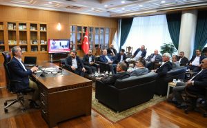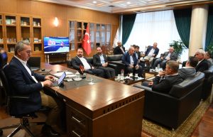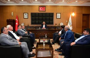 Kahramanmaraş Büyükşehir Belediye Başkanı Hayrettin Güngör, Türkoğlu’nda görev yapan mahalle muhtarlarını makamında ağırladı. Mahallelerin ihtiyaçları ve hayata geçirilecek yatırımlara ilişkin muhtarlarla istişarelerde bulunan Başkan Güngör, “Mahallelerimizin ihtiyaçları tespit etme ve hayata geçireceğimiz yatırımlarımız hakkında istişarelerde bulunma noktasında muhtarlarımızla sık sık bir araya geliyoruz. Bugün de Türkoğlu ilçemizde görev yapan muhtarlarımızı misafir ettik. Nazik ziyaretleri için tüm muhtarlarımıza teşekkür ediyorum” dedi.
