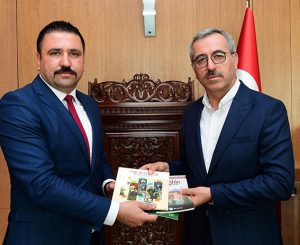 Kahramanmaraş Büyükşehir Belediye Başkanı Hayrettin Güngör, Ülkü Ocakları Kahramanmaraş İl Başkanı Dursun Nar ve yönetim kurulu üyelerini makamında ağırladı. Ziyaretten duyduğu memnuniyeti ifade eden Büyükşehir Belediye Başkanı Hayrettin Güngör, “Ülkü Ocakları Kahramanmaraş İl Başkanı Dursun Nar ve yönetim kurulu üyelerini misafir ettik. Nazik ziyaretlerinden dolayı Sayın Dursun Nar ve yönetim kurulu üyelerine teşekkür ediyorum” dedi. Ülkü Ocakları Kahramanmaraş İl Başkanı Dursun Nar da misafirperverliklerinden dolayı Başkan Hayrettin Güngör’e teşekkür etti.