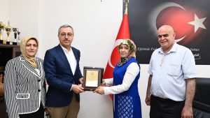 Kahramanmaraş Büyükşehir Belediye Başkanı Hayrettin Güngör, Onikişubat Dumlupınar Şehit Haşim Yenigül İlk ve Ortaokulu’nu ziyaret ederek okul idarecileri, öğretmenler, öğrenciler ve okul aile birliği yönetim kurulu üyeleriyle bir araya geldi. Başkan Güngör’ün eşi Leyla Güngör’ün de yer aldığı ziyarette Başkan Hayrettin Güngör, öğretmenler, okul aile birliği yönetim kurulu üyeleri ve öğrencilerle bolca sohbet etti. Ziyarette, okul aile birliği başkanı Yasemin Gürbüzel, geçtiğimiz günlerde okula kazandırılan Şehit Piyade Uzman Çavuş Haşim Yenigül Anıt Köşesi ve Kütüphanesi’ne katkılarından dolayı Başkan Hayrettin Güngör’e teşekkür plaketi takdim etti.