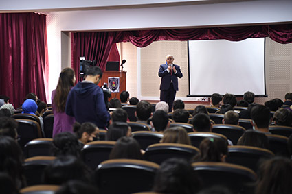 EXPO sunumunun ardından öğrencilere seslenen Başkan Mahçiçek, Kahramanmaraş’ın değerlerini anlatarak, tanıtım noktasındaki eksikliğe dikkat çekti. Başkan Mahçiçek, “Kahramanmaraş bir sanayi kenti, 500’ün üzerinde fabrikası var. Kahramanmaraş, Türkiye’nin iplik üretiminin 3’te birini kendi başına karşılar. Kahramanmaraş, çelik eşya sektörünün yüzde 64’ünü üretir. Kahramanmaraş, Türkiye’de dokumanın ise yüzde 17’sini yine kendi başına üretir. Enerjinin yüzde 12’sini, çimentonun yüzde 10’unu üretir ama Kahramanmaraş hangi bölgede, nerede derseniz Türkiye’deki insanlarımızın yüzde 99’u bilmez. Şunu anlatmak istiyorum; her şeyimiz var ama bilinmiyor ve tanınmıyoruz. Öyleyse Kahramanmaraş’ımızın tanınması, bilinirliliğinin artması için ne yapmamız lazım? İşte bu şekilde uluslararası projeleri Kahramanmaraş’ımıza taşımamız lazım. Hem Türkiye’nin her tarafından hem de dünyanın dört bir yanından misafir almalıyız. Dünyada böyle uluslararası projeler var ama daha yaygın olanları hep sportif amaçlı olanlardı. Dünya Kupası, Avrupa Futbol Şampiyonası ya da olimpiyatlar gibi. Bu yeni uluslararası organizasyon o ülkelerin değerlerini ortaya çıkarmak için yapılmıştır” dedi.