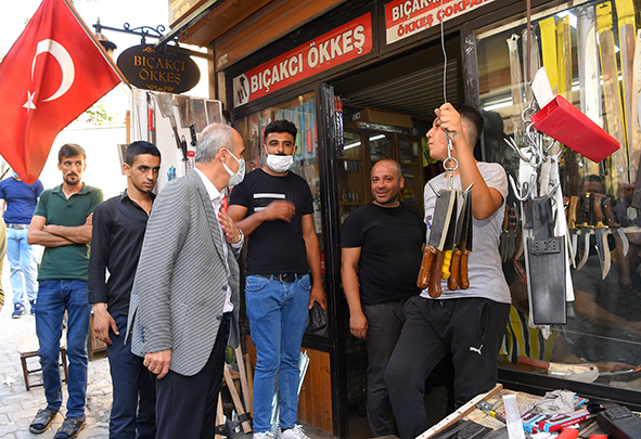 Dulkadiroğlu Belediye Başkanı Necati Okay, yoğun esnaf ziyaretlerini Demirciler Çarşısı esnafıyla sürdürdü. Çarşı esnafına işlerinde hayırlar dileyen Başkan Okay, pandemi sürecinde normalleşmeyle birlikte çarşıların hareketlendiğini belirtti.