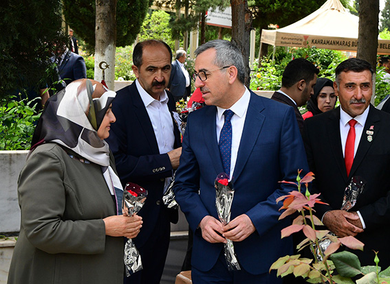 Kahramanmaraş Büyükşehir Belediye Başkanı Hayrettin Güngör, Ramazan Bayramı arifesinde Şeyh Adil Mezarlığı’ndaki şehitliği ziyaret ederek şehit mezarlarına karanfil bırakarak dua etti. Şehitlik ziyaretinde Başkan Güngör’ün yanı sıra Tarım ve Orman Bakanı Prof. Dr. Vahit Kirişci, Vali Ömer Faruk Coşkun, AK Parti Grup Başkan Vekili Mahir Ünal, İçişleri Komisyon Başkanı Celalettin Güvenç, AK Parti Kahramanmaraş Milletvekilleri Habibe Öçal ve Ahmet Özdemir, MHP Kahramanmaraş Milletvekili Sefer Aycan, Garnizon Komutanı Emin Mehmet Terzioğlu, KSÜ Rektörü Niyazi Can, AK Parti İl Başkanı Fırat Görgel, Kadın Kolları Başkanı Gül Çitil Okur, Kahramanmaraş Ülkü Ocakları İl Başkanı Dursun Nar, kent protokolü, STK temsilcileri, gaziler ve şehit yakınları da yer aldı.