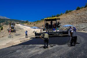 Dulkadiroğlu Belediyesi’nin Bertiz bölgesinde yüksek standartlı grup yolu olarak planladığı sırt yolu projesinde asfalt serim çalışmaları başladı.
