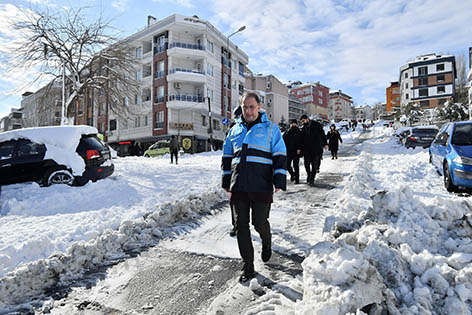 Hem gece hem de gün içerisinde ekipler tarafından yürütülen çalışmaları yerinde takip ederek bilgi alan Beylikdüzü Belediye Başkanı Mehmet Murat Çalık, metrobüs meydanında gerçekleşen çorba dağıtımına da katıldı. Başkan Çalık, “Afet Anı Koordinasyon ve Lojistik Merkezimizde, arkadaşlarımızla birlikte hareket planımızı yaptık. Ana arterlerin büyük bir kısmı açık ve trafikte büyük bir oranda akışkanlık sağlanmış durumda. Vatandaşlarımızın biraz daha sabretmesini rica ediyorum. Ara yollara da girecek ve oraları da açacağız. Beylikdüzü’nde hiçbir vatandaşımızı mağdur etmeyeceğiz. Sıcak yemek dağıtımının yanı sıra can dostlarımızla ilgili beslemelerimizi yapıyoruz. Bununla birlikte vatandaşlarımızın içi ısınsın diye de belli lokasyonlarda çorba ikramlarımız devam ediyor. Yerel yönetim olarak elimizden geldiğince çaba ve gayret içerisindeyiz.  Komşularımdan ricam, evlerinde olsunlar ve mecbur olmadıkça dışarıya çıkmasınlar. Beylikdüzü’nde her şey kontrol altında.” ifadelerini kullandı. Ayrıca yapılan çalışmalar kapsamında Beylikdüzü’nü ziyaret ederek Başkan Çalık’tan bilgi alan İBB Başkanı Ekrem İmamoğlu ilçede incelemelerde bulundu.