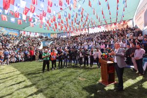 Bertiz bölgesinin öneminden bahseden Başkan Okay, son olarak şunları dile getirdi: “Bu zenginliklerin başında da yöresel ürünleri gelmektedir. Bugün burada güreş festivali ile birlikte bu zenginliğe de dikkat çekmek istiyoruz. Özellikle ünü Türkiye sınırlarını aşan kabarcık üzümü ve cevizinin altını çizmek istiyorum. Farklı aroması, ortaya çıkardığı çeşitli şıra ürünleriyle dikkat çeken kabarcık üzümü, bölgemizin önemli bir zenginliğidir. Tüm bu zenginliklerimizi katıldığımız her etkinlikte ve programda ön plana çıkarma adına çalışma yapıyoruz. Katıldığımız festivallerde, tanıtım günlerinde ve etkinliklerde Bertiz bölgemiz başta olmak üzere tüm ürünlerimizi özenle tanıtıyoruz. Bertiz bölgesi her yönüyle dikkat çeken ve özenle hizmet edilen bölgelerimiz arasındadır. İhtiyaç duyduğu her hizmeti Bertizimizle buluşturmayı sürdüreceğiz.”
