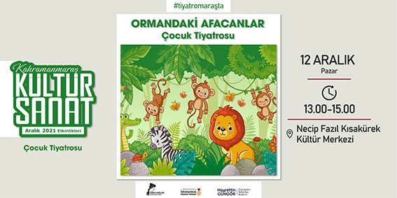 Kahramanmaraş Büyükşehir Belediyesi Aralık Kültür Sanat Etkinlikleri birbirinden renkli programlarına devam ediyor. Takvim kapsamında, 12 Aralık Pazar günü Necip Fazıl Kısakürek Kültür Merkezi’nde düzenlenecek etkinliklerin ilki Ormandaki Afacanlar adlı çocuk tiyatrosu olacak. Saat 13.00 ve 15.00’da iki seans olarak gösterimi yapılacak oyun, ormandaki sevimli hayvanların maceralarla dolu öykülerini sahneye taşıyacak.