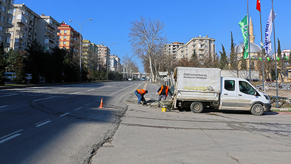 Kahramanmaraş Büyükşehir Belediyesi ekipleri, deforme olan arterler ve yürüyüş yollarında yenileme çalışmaları gerçekleştiriyor.