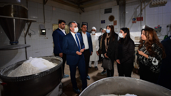 Halk Ekmek Fabrikası ve İtfaiye Daire Başkanlığı’nda personellerle bir araya gelen Büyükşehir Belediye Başkanı Hayrettin Güngör, “Kahramanmaraş’ımıza hizmet yolunda tüm mesai arkadaşlarımızla gece gündüz emek sarf ediyoruz. Milletimizin emrindeyiz” dedi. Kahramanmaraş Büyükşehir Belediye Başkanı Hayrettin Güngör, gece mesaisinde çalışmalarını sürdüren personelleri ziyaret etti. İlk olarak Küçük Sanayi Sitesi’nde asfaltlama çalışmaları devam eden Mehmet Nuri Arıkan Caddesi’nde Fen İşleri Dairesi Başkanlığı ekipleriyle bir araya gelen Başkan Güngör, buradan İtfaiye Daire Başkanlığı’na hareket etti. Ardından Halk Ekmek fırınını ziyaret eden Başkan Güngör, personellere ikramda bulunarak sohbet etti. Ziyareti sonrası açıklamada bulunan Büyükşehir Belediye Başkanı Hayrettin Güngör, “Günün sonunda il başkan yardımcımız ve gençlik meclisi üyelerimizle İtfaiye Daire Başkanlığı’mızı ve Halk Ekmek Fabrikamızı ziyaret ettik. Kahramanmaraş’ımıza hizmet yolunda tüm birimlerimizle gece gündüz emek sarf ediyoruz. Milletimizin emrindeyiz. Tüm çalışma arkadaşlarıma vazifelerinde kolaylıklar diliyorum” diye konuştu.