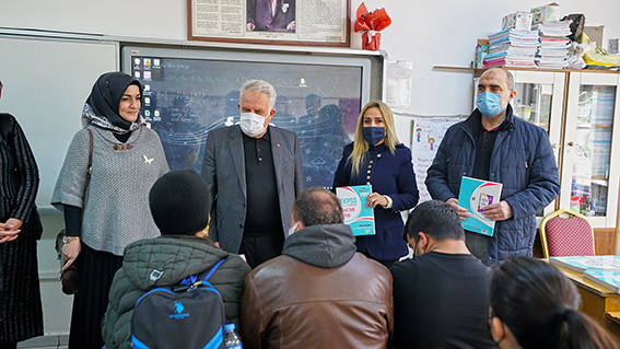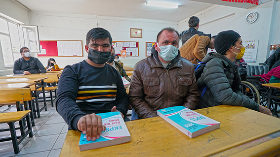 Büyükşehir Belediyesi ve Onikişubat Halk Eğitim Müdürlüğü iş birliğiyle memur adayı özel gereksinimli öğrencilere EKPSS’ye hazırlık kitapları hediye edildi. Kahramanmaraş Büyükşehir Belediyesi, sosyal belediyecilik hizmetlerini de aralıksız sürdürüyor. Bu kapsamda, Onikişubat Halk Eğitim Müdürlüğü iş birliğiyle özel gereksinimli öğrencilere yönelik düzenlenen EKPSS kursları devam ediyor. Ayşe Gümüşer İlkokulu’nda gerçekleştirilen eğitimlere 120 özel gereksinimli vatandaş katılıyor. Ulaşım konusunda da EKPSS öğrencilerine kesintisiz destek olan Büyükşehir, son olarak da Büyükşehir Belediyesi Başkan Vekili Arif Şen’in katılımıyla özel gereksinimli bireylere hazırlık kitapları hediye etti. Her Zaman Yanlarındayız Büyükşehir Belediyesi Başkan Vekili Arif Şen, “Büyükşehir Belediyemiz ile Onikişubat Halk Eğitim Müdürlüğü iş birliğiyle düzenlenen kitap dağıtım etkinliğimizi gerçekleştirdik. Burada engelli kardeşlerimize kitaplar hediye ettik. Öğretmenlerin, engelli kardeşlerimizle yakından ilgilendiğini görmek bizleri daha da mutlu etti. Düzenlenen bu eğitimlerin, öğrencilerimizin akademik gelişimine büyük katkı sağlayacağına inanıyorum. Büyükşehir Belediyesi olarak bizler de bu öğrencilerimizin her zaman yanındayız” ifadelerini kullandı.