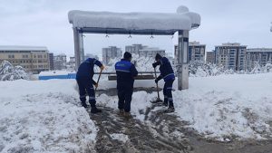 Şehir genelinde etkili olan yoğun kar yağışının ulaşımda aksamalara yol açmaması ve vatandaşların günlük yaşamının olumsuz etkilenmemesi amacıyla Kahramanmaraş Büyükşehir Belediyesi, sahadaki çalışmalarını kesintisiz şekilde sürdürüyor. Büyükşehir Belediyesi ekipleri, olumsuz hava koşullarına karşı tüm birimleriyle teyakkuz halinde çalışmalarına devam ediyor. Ulaşımın güvenli ve kesintisiz bir şekilde sağlanması adına başta ana arterler olmak üzere şehir içi yollar, bulvarlar, cadde ve sokaklar ile kırsal mahalle yollarında kar küreme, tuzlama ve solisyon uygulamaları yoğun bir şekilde gerçekleştiriliyor. Yürütülen çalışmalarla, kar birikimi ve buzlanmanın neden olabileceği risklerin önüne geçilerek yolların ulaşıma açık tutulması sağlanıyor. Öte yandan yaya güvenliğini önceleyen Kahramanmaraş Büyükşehir Belediyesi, şehir genelinde kapsamlı bir temizlik çalışması da yürütüyor. Çevre Koruma ve Sıfır Atık Dairesi Başkanlığı koordinesinde gerçekleştirilen çalışmalarda toplam 200 personel görev alıyor. Ekipler; kaldırımlar, yaya geçitleri, hastane çevreleri, kamu kurum ve kuruluşlarının önleri ile vatandaşların yoğun olarak kullandığı yürüyüş yollarında biriken karları titizlikle temizliyor. Yürütülen bu çalışmalarla birlikte özellikle kar ve buzlanma nedeniyle oluşabilecek kayma ve düşme gibi olumsuzlukların önüne geçilmesi hedefleniyor.