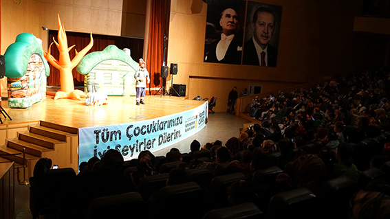 Kahramanmaraş Büyükşehir Belediyesi, ara tatilde olan çocuklar için çeşitli etkinlikler düzenlemeye devam ediyor. Öğrencilerin daha eğlenceli ve verimli bir tatil dönemi geçirmelerini hedefleyen Büyükşehir Belediyesi, tiyatro gösterileri, masal saati ve yüz boyama gibi birbirinden eğitici ve öğretici etkinlikleri miniklerle buluşturuyor. Bu kapsamda, ‘Karagöz – Hacivat’ oyunu çocuklar için perdelerini açtı. Mehmet Akif Ersoy Kültür Merkezi’nde gerçekleştirilen tiyatro gösterisine çocuklar ve ebeveynleri yoğun ilgi gösterdi. Bir yandan eğlendirirken bir yandan da öğretici dersler vermeyi ihmal etmeyen oyun izleyicilerin beğenisini kazandı. Oyun öncesi gerçekleştirilen yüz boyama etkinliğinde de gönüllerince eğlenen miniklerin neşesi görülmeye değerdi.