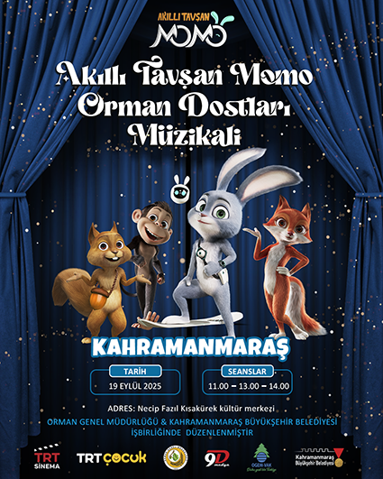 Kahramanmaraş Büyükşehir Belediyesi, sosyal belediyecilik anlayışı doğrultusunda toplumun her kesimine dokunan kültürel ve sanatsal faaliyetlerine hız kesmeden devam ediyor. Bu kapsamda, çocuklara yönelik özel etkinliklerini sürdüren Büyükşehir Belediyesi, Orman Genel Müdürlüğü iş birliğinde 19 Eylül Cuma günü Akıllı Tavşan Momo Orman Dostları Müzikali etkinliği çocuklarla buluşacak. NFK Kültür Merkezinde düzenlenecek olan etkinlik 11.00, 13.00 ve 14.00 saatleri arasında 3 farklı seans ile çocuklarla buluşacak. Büyükşehir Belediyesinden yapılan açıklamada, çocuklara ormanların önemi, doğayı korumanın gerekliliği ve çevre bilinci gibi konuların eğlenceli ve öğretici bir dille anlatılacağı müzikale tüm çocukların davetli olduğu belirtildi.