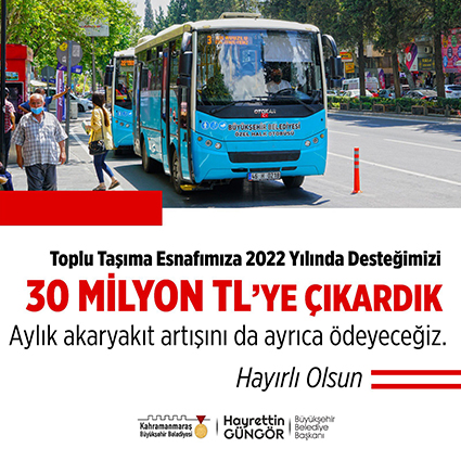 Büyükşehir Belediye Başkanı Hayrettin Güngör, toplu taşıma esnafına yönelik yeni bir desteğin daha müjdesini verdi. Başkan Güngör, “Toplu taşıma esnafımıza aylık desteğimizi 5 bin 500 TL’ye çıkarıyoruz. 2022 yılında toplam 30 Milyon TL destek sağlayacağız. Hayırlı olsun” dedi. Kahramanmaraş Büyükşehir Belediyesi, önemli bir dayanışma adımı daha atarak, Özel Halk Otobüsü esnafına yönelik gelir desteğindeki yeni rakamı açıkladı. Müjdeyi veren Başkan Güngör, “Pandemi sürecinde kısıtlılıklar sebebiyle yolcu taşıma kapasiteleri yarı yarıya düşen Özel Halk Otobüsü esnafımıza 26 Milyon TL’lik destek sağlamıştık. Bu desteğimiz bu yıl da sürecek. 2022 yılı içerisinde esnafımıza 30 Milyon TL destek sağlıyoruz. Aylık akaryakıt artışını da ayrıca karşılayacağız. Bu çalışmamızla birlikte, Onikişubat, Dulkadiroğlu, Elbistan ve Afşin ilçelerimizde faaliyet gösteren toplu taşıma esnafımıza yönelik toplam gelir desteğimiz 56 Milyon TL’yi buldu” ifadelerini kullandı. Pandeminin ilk gününden bu yana önemli dayanışma adımlarının atıldığını vurgulayan Başkan Güngör, yeni desteğin esnafa hayırlı olmasını diledi. İki Katından Fazla Arttı Toplamda 409 esnafın yararlanacağı destek miktarının bir önceki yılın aynı ayına göre iki katından fazla arttığına dikkat çeken Başkan Güngör desteğe ilişkin detaylı bilgiyi, “Bu yıl Onikişubat ve Dulkadiroğlu ilçelerimizdeki esnafımıza 5 bin 500 TL, Afşin ve Elbistan’da 4 bin 750 TL, EÜTS kapsamında çalışan Özel Halk Otobüsleri’ne de aylık 3 bin 500 TL gelir desteği sağlıyoruz. Hemşehrilerimizin, esnafımızın her zaman yanındayız, hizmetlerindeyiz. Hayırlı olsun” şeklinde verdi.