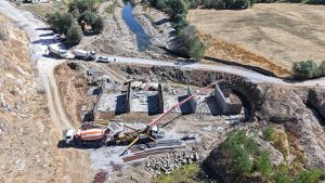 Göksun’da her alanda ulaşım ağının modernleştirilmesi adına çalışmalarını sürdüren Kahramanmaraş Büyükşehir Belediyesi, Temurağa ve Hacıömer mahallelerini Çardak Grup Yolu’na bağlayan güzergâhta, yarım asırlık köprünün yerine daha güvenli, modern ve kullanışlı köprü inşasını da sürdürüyor. Yaklaşık 12 Milyon TL’lik yatırım bedeli ile eski köprünün yerine yapılan 40 metre uzunluğunda ve 10 metre genişliğinde modern köprü Temurağa ve Hacıömer mahallelerinin hem ulaşım altyapısının güçlendirecek hem de araç trafiğinin güvenli ve kesintisiz hale getirecek.
