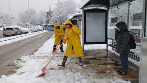 Kahramanmaraş Büyükşehir Belediyesi, şehir genelinde etkili olan yoğun kar yağışının ulaşımı ve günlük yaşamı olumsuz etkilememesi için çalışmalarını aralıksız sürdürüyor. Ana arterler başta olmak üzere cadde, bulvar ve kavşaklarda kar küreme, tuzlama ve solisyon uygulamalarını kesintisiz şekilde devam ettiren Büyükşehir ekipleri, yaya güvenliğini sağlamak amacıyla kaldırımlarda da yoğun bir mesai yürütüyor. Çevre Koruma ve Sıfır Atık Dairesi Başkanlığı koordinesinde görev yapan ekipler, şehir merkezindeki ana caddelerde ve yoğun yaya kullanımının bulunduğu bölgelerde kaldırımlarda biriken karları temizleyerek yürüyüş yollarını güvenli hale getiriyor. Özellikle vatandaşların günlük yaşamda sıklıkla kullandığı güzergâhlarda yapılan çalışmalarla, yaya trafiğinde yaşanabilecek aksamaların önüne geçilmesi hedefleniyor. Şehir merkezinin muhtelif noktalarında 200 personelin görev aldığı çalışmalarda, kaldırımlarda biriken karlar hızla temizlenirken, buzlanma riskine karşı da gerekli tedbirler alınıyor. Ekipler, yaya güvenliğini ön planda tutarak yürüyüş yollarının konforlu ve güvenli bir şekilde kullanılabilmesi için titizlikle çalışmalarını sürdürüyor.