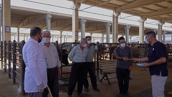 Büyükşehir Belediyesi’ne bağlı Canlı Hayvan Borsası’nda bayrama sayılı günler kala yoğunluklar başladı. Uzman Veteriner hekimler tarafından titizlikle kontrol edilerek yapılan satışlar, sıkı pandemi tedbirleriyle gerçekleşiyor. Kahramanmaraş Büyükşehir Belediyesi, yaklaşan bayrama yönelik çalışmalarını aralıksız sürdürüyor. Büyükşehir bünyesinde bulunan “Canlı Hayvan Borsası’nda” bayrama sayılı günler kala yoğunluklar başladı. Kontrollü Normalleşme sürecine uygun olarak hizmet veren tesise giriş çıkışlarda “HES Kodu” sorgulaması yapılırken, geleneksel kurban pazarlıkları da sosyal mesafeye uygun olarak gerçekleştiriliyor. Büyükşehir Belediyesi Mahalle ve Tarım Hizmetleri Dairesi Başkanlığı bünyesindeki tesiste satışı gerçekleşen kurbanlar da sıkı kontrollerden geçiyor. Uzman Veteriner hekimler tarafından sağlık durumları, küpeleri ve kayıtları kontrol edilen küçük ve büyükbaş hayvanlar, tesiste de belirli periyotlarla kontrol ediliyor. Kurban almak isteyen vatandaşları da yönlendiren uzman ekipler, bilgilendirici broşürler dağıtarak kurban alışverişinin sağlıklı şartlarda gerçekleşmesini sağlıyor.