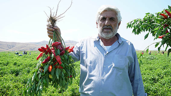 Kahramanmaraş Büyükşehir Belediyesi tarafından çiftçilere dağıtılan 2,5 milyon biber fidesi hasat edilmeye başladı. Fideyle dikilen coğrafi işaretli ürün, hem maliyetleri düşürdü, hem de verimliliğiyle çiftçinin yüzünü güldürdü. Kahramanmaraş Büyükşehir Belediyesi tarafından tarımsal üretime verilen destekler meyvelerini veriyor. Geçtiğimiz Nisan ayında Dulkadiroğlu, Onikişubat, Pazarcık ve Türkoğlu ilçelerinde tarımsal üretim gerçekleştiren onlarca çiftçiye biber fidesi desteği verilmişti. Toplamda 2,5 milyon adet dağıtılan coğrafi işaretli “Kahramanmaraş Kırmızı Biberi” hasat edilmeye başlandı. Fideden üretim yapılan ürünün, tohumdan üretime kıyasla hem birim alanından alınan verim attı, hem de sulama, çapalama giderlerinden çiftçiyi tasarruf ettirdi. Mahalle ve Tarım Hizmetleri Dairesi Başkanlığı tarafından yapılan açıklamada, “Büyükşehir Belediyesi olarak 2019 yılında 1.2 milyon adet olarak gerçekleştirdiğimiz biber fidesi desteğini bu yıl Büyükşehir Belediye Başkanımız Sayın Hayrettin Güngör’ün talimatlarıyla 2 katına çıkardık. Kahramanmaraş Kırmızı Biberi’nin üretim sahasını genişletmek ve pazar payını artırmak için desteklerimizi ilerleyen süreçte de sürdüreceğiz. Hasat edilen ürünlerimizin çiftçilerimize bereket, vatandaşlarımıza afiyet olmasını temenni ediyoruz” ifadeleri kullanıldı. Tarımsal Bir Değer Büyükşehir Korumasında Biber yetiştiren çiftçiler de yapılan hasattan memnun. Destek sağlanan tarım üreticisi Sait Kokulu, “Kahramanmaraşımızın tescilli ürünü olduğu için kırmızı biberimizi yetiştirmeye gayret ediyoruz. Mahsüllerimiz bereketli geldi, Büyükşehir Belediye’mize teşekkür ediyorum” ifadelerini kullanırken, çiftçi Ejder Keklik, “Yıllar önce tohumla ektiğimiz biberle, fideden ekim yaptığımız biber arasında fark görüyoruz. Kırımlarda inanılmaz fark ediyor” dedi. Üreticilerden Ali Yavuz ise açıklamasında, “Baharatlık biber yetiştiriciliği yavaş yavaş azalmaktaydı. Biz çiftçiler olarak buna sahip çıkıyoruz. Yapılan fide desteği esasında önemli bir teşvik. Coğrafi işaretli ürünümüzün kaybolup gitmesine engel oluyor. Büyükşehir Belediyemiz ile üretimi ve istihdamı artıracağız. Şehrimizin değerlerini muhafaza edeceğiz” diye konuştu.