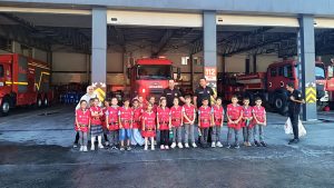 Ziyarette itfaiyecilerin yangın, deprem ve trafik kazaları gibi farklı olaylara nasıl hazırlandığına dair bilgiler paylaşılırken, kullanılan araç ve ekipmanlar da tanıtıldı. Yangın söndürme hortumları, kurtarma donanımları ve modern yangın araçlarını yakından görme fırsatı bulan minikler, hem eğlenceli hem de öğretici bir deneyim yaşadı.