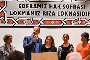 Beylikdüzü Belediye Başkanı Mehmet Murat Çalık ise “Cem meydanından muhabbet meydanına, aşevinden açık alanlarına kadar her yönüyle geleneksel karakteri barındıran ve bu özelliğiyle örnek bir proje olarak kentimize kazandırdığımız bir cemevindeyiz. Sayın Ahmet Davutoğlu’nun oruç açma lokmasında bir araya geldik. Bir kez daha tutulan tüm oruçların kabul olmasını diliyorum. Bugün ne yazık ki alevi derneklerine ve cemevlerine yapılan saldırıları konuşuyoruz. Şiddetin olduğu her şeyin karşısındayız. Buradan bu saldırıları kınadığımızı ifade etmek istiyorum.” şeklinde konuştu.