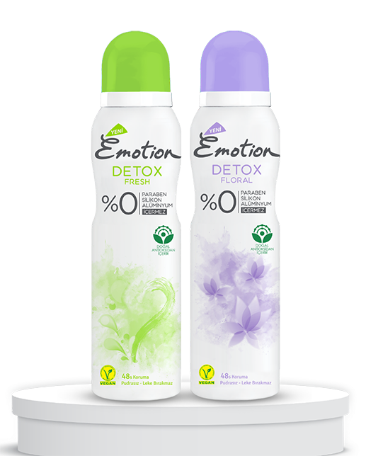 Yeni Emotion Detox deodorant serisinin fresh ve floral kokulara sahip iki yeni sprey deodorantının da alüminyum, paraben ve silikon içermediğini dile getiren Kalkandelen Kırateli, “Yeni Detox Deodorant Serisi, vücudun toksinlerden arınması için kullandığı antioksidanları, doğal antioksidan özleri formunda deodorant içeriğine ekleyerek, doğal terleme sürecine daha fazla destekte bulunuyor. Emotion, çevreye karşı duyarlılığı ve kadın sağlığını korumak için attığı yenilikçi adımlarına devam edecek” şeklinde konuştu.