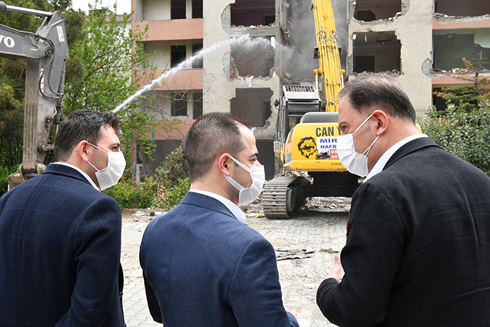 Beylikdüzü’nde riskli binalarda başlatılan kentsel dönüşüm süreci hız kesmeden devam ediyor. Sürecin sıkı takipçisi olan Beylikdüzü Belediye Başkanı Mehmet Murat Çalık, Gürpınar Mahallesi Siteler Bölgesi’nde bulunan Güneş Apartmanı’ndaki yıkım çalışmalarını KİPTAŞ Genel Müdürü Ali Kurt ile birlikte yerinde inceleyerek bilgiler aldı. Beylikdüzü Belediyesi ve KİPTAŞ iş birliğiyle yürütülen yıkım çalışmasında vatandaşlarla da bir araya gelen Başkan Çalık, kentsel dönüşüm çalışması kapsamında bugün burada yaşayan kişilerin hayalini gerçekleştirdiklerini belirtti. Diğer taraftan uzlaşma sürecinin devam ettiğini ve uzlaşmada 2/3’lük çoğunluğun sağlandığını da belirten Çalık, “Bu anlamda destek veren vatandaşları yarı yolda bırakmayacağız. Gürpınar'da dönüşümü adım adım gerçekleştiriyoruz. Bunda da kararlı olduğumuzu tüm Beylikdüzü halkına söylemek istiyorum.” şeklinde konuştu.