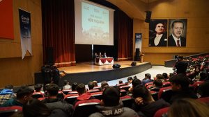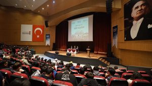 Doç. Dr. Mustafa Edip Çelik konuşmasında, Kahramanmaraş’ın Millî Mücadele döneminde sergilediği direnişin sadece askeri bir karşı koyuş değil, aynı zamanda güçlü bir toplumsal bilinç ve inanç hareketi olduğunu vurguladı. Şehir halkının, hiçbir düzenli ordu desteği olmaksızın, işgale karşı gösterdiği kararlı duruşun Anadolu’daki diğer direniş merkezlerine ilham kaynağı olduğunu belirten Çelik, Kahramanmaraş’ta verilen mücadelenin bağımsızlık yolunda kritik bir dönüm noktası olduğuna dikkat çekti. Konuşmasında arşiv belgeleri ve tarihsel örnekler üzerinden değerlendirmelerde bulunan Çelik, gençlere tarih bilinci kazandırmanın milli kimliğin korunmasındaki önemine vurgu yaptı.