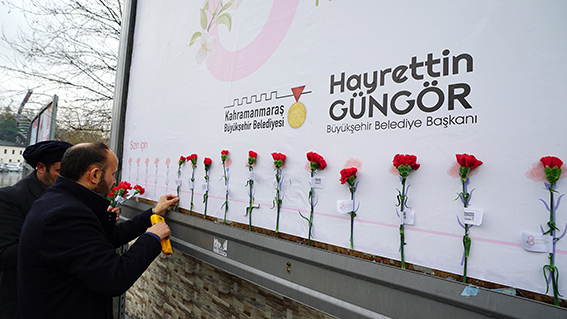 Kahramanmaraş Büyükşehir Belediyesi, 8 Mart Dünya Kadınlar Günü dolayısıyla örnek bir farkındalık çalışmasını hayata geçirdi. Şehrin muhtelif yerlerindeki açık hava reklam alanları karanfillerle donatıldı. Büyükşehir Belediye Başkanı Hayrettin Güngör’ün kutlama mesajının da yer aldığı karanfiller, vatandaşlarda da ilgi uyandırdı. Büyükşehir Belediye Başkanı Hayrettin Güngör’e teşekkür eden vatandaşlar, “Dünya Kadınlar Günü’nde bizleri unutmayarak karanfiller hediye eden Büyükşehir Belediye Başkanımız Hayrettin Güngör’e bu ince davranışı için teşekkür ediyoruz” ifadelerine yer verdiler.