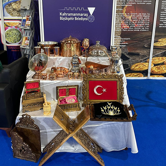 Büyükşehir Belediyesinin fuardaki tanıtım çalışmaları yalnızca gastronomiyle sınırlı kalmadı. Kahramanmaraş’ın kültürel mirasının önemli bir parçası olan geleneksel el sanatları da ziyaretçilerin beğenisine sunuldu. Ceviz oyma sandıklar, ince işçilikle hazırlanan bakır ürünler, yemeniler ve sim sırma işlemeleri, standın dikkat çeken unsurları arasında yer aldı. El emeği göz nuru ürünler hem estetik değerleri hem de kültürel derinlikleriyle büyük ilgi gördü. Ziyaretçiler hem yöresel tatları deneyimleme hem de geleneksel sanatları yakından inceleme fırsatı bulurken, Kahramanmaraş’ın zengin kültürel dokusu ulusal ve uluslararası platformda bir kez daha gözler önüne serildi.
