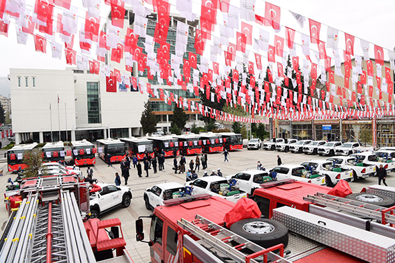Yeni Otobüs ve Hizmet Araçları Teslim Töreni’nde konuşan Büyükşehir Belediye Başkanı Hayrettin Güngör, “Geçtiğimiz yıl 5 otobüs almıştık. Bugünkü araçlarla bu sayımızı 10’a çıkarmış olduk. Bunun yanı sıra çevre hizmetleri için 35, Halk Ekmek Fabrikası için 12, İtfaiye Teşkilatımız için de 5 yeni aracı daha hizmete alıyoruz. Bu araçların hepsi şehrimizin, hemşehrilerimizin hizmetinde. Hayırlı olsun” dedi.
