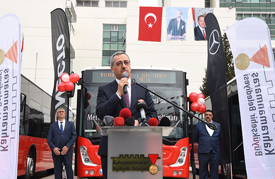 Kahramanmaraş Büyükşehir Belediyesi, Yeni Belediye Otobüsleri ve Hizmet Araçları Teslim Töreni gerçekleştirildi. Milli İrade Meydanı’nda düzenlenen programa Büyükşehir Belediye Başkanı Hayrettin Güngör’ün yanı sıra Vali Ömer Faruk Coşkun, AK Parti Grup Başkan Vekili Mahir Ünal, İç İşleri Komisyonu Başkanı Celalettin Güvenç, ilçe belediye başkanları, AK Parti İl Başkanı Fırat Görgel, ilçe başkanları, STK temsilcileri, vatandaşlar ve basın mensupları yer aldı. Etkinliğin açılış konuşmasını yapan Mercedes Benz Türk Kamu Satış Müdür Yardımcısı Doğan Celep, 5 yeni araçla birlikte Kahramanmaraş’a 10 yeni otobüsün teslim edildiğini belirtti.