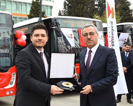 Toplu taşımadan çevreye, yeni araçlar vatandaşın hizmetine sunuldu… Yeni Otobüs ve Hizmet Araçları Teslim Töreni’nde konuşan Büyükşehir Belediye Başkanı Hayrettin Güngör, “Geçtiğimiz yıl 5 otobüs almıştık. Bugünkü araçlarla bu sayımızı 10’a çıkarmış olduk. Bunun yanı sıra çevre hizmetleri için 35, Halk Ekmek Fabrikası için 12, İtfaiye Teşkilatımız için de 5 yeni aracı daha hizmete alıyoruz. Bu araçların hepsi şehrimizin, hemşehrilerimizin hizmetinde. Hayırlı olsun” dedi. Kahramanmaraş Büyükşehir Belediyesi, Yeni Belediye Otobüsleri ve Hizmet Araçları Teslim Töreni gerçekleştirildi. Milli İrade Meydanı’nda düzenlenen programa Büyükşehir Belediye Başkanı Hayrettin Güngör’ün yanı sıra Vali Ömer Faruk Coşkun, AK Parti Grup Başkan Vekili Mahir Ünal, İç İşleri Komisyonu Başkanı Celalettin Güvenç, ilçe belediye başkanları, AK Parti İl Başkanı Fırat Görgel, ilçe başkanları, STK temsilcileri, vatandaşlar ve basın mensupları yer aldı. Etkinliğin açılış konuşmasını yapan Mercedes Benz Türk Kamu Satış Müdür Yardımcısı Doğan Celep, 5 yeni araçla birlikte Kahramanmaraş’a 10 yeni otobüsün teslim edildiğini belirtti. Yılda 50 Milyon Yolcu Celep’in konuşmasının ardından kürsüye gelen Büyükşehir Belediye Başkanı Hayrettin Güngör, toplu taşıma, çevre hizmetleri, Halk Ekmek Fabrikası ve İtfaiye için alınan araçların hayırlı olmasını diledi. Başkan Güngör, “Şehrimizde toplam 471 araçla aylık 4 milyon civarında, yıllık da 50 milyon civarında yolcu taşıyoruz. Tabi şehrimizde ulaşım hizmetini çoğunlukla Özel Halk Otobüslerimiz aracılığıyla gerçekleştiriyoruz. Bu süreçte Özel Halk Otobüsü esnafımızla iş birliği içerisinde çok güzel işlere imza attık. Zor dönemlerden geçen otobüs esnafımızın her zaman yanında olmaya gayret ettik. Her ay düzenli olarak sağladığımız desteklere ek olarak aylık akaryakıt fiyat farkını da otobüs esnafımıza ödemeye başladık. Buna da Kahramanmaraş Modeli adını verdik. Özel Halk Otobüsü esnafına akaryakıt fiyat farkını doğrudan ödeyen tek Büyükşehir Belediyesi olduğumuzu da ifade etmek istiyorum. Otobüs esnafımızı mağdur etmemek adına desteklerimiz devam edecek” diye konuştu. Belediye Otobüsü Sayısı 70’e Çıktı Yeni alınan araçlarla belediye otobüsü sayısının 70’e çıkarıldığını da açıklamalarına ekleyen Başkan Güngör, “Geçtiğimiz yıl şehrimize 5 adet yeni otobüs kazandırmıştık. Bugün de teslim aldığımız bu araçlarla toplam sayımızı 10’a çıkarmış olduk. Yeni aldığımız otobüslerin standardı çok yüksek. Çevreye duyarlı, tasarruflu, yolcular için konforlu biniş sağlayan sistemler, engelli rampası, kör nokta ve çarpışma önleyici sensörler bulunuyor. Yeni otobüslerimizi ana caddelerde ve uzun güzergâhlarda hemşehrilerimizin hizmetine sunacağız. Şehrimize kazandırdığımız otobüslerin bugünkü değeri 23 Milyon TL. Bu tutarı tamamen öz kaynaklarımızla karşıladık” dedi. Çevre Hizmetlerine 35 Araç Çevre hizmetleri için de 35 yeni aracın alındığını belirten Başkan Hayrettin Güngör, “Bugün Çevre koruma Kontrol Dairesi Başkanlığımız bünyesinde hizmet verecek toplamda 35 adet ilaçlama aracı aldık. Bunlar daha önce kiralama yöntemiyle yapılıyordu. Ancak bu sefer satın almaya karar verdik. 2 yıl içerisinde yeni aldığımız bu araçlar kendisini amorti edecek. Yeni aldığımız araçlar ilaçlama dışında da Büyükşehir Belediyemizin diğer hizmetlerinde de kullanılabilecek” diye konuştu. 56 Milyon TL’lik Yatırım İtfaiye Teşkilatı’nın da güçlendirildiğine dikkat çeken Başkan Güngör, “Bugün 3 merdivenli araç ve 2 arazözü filomuza kazandırdık. Bununda bugünkü yatırım maliyeti tam 8 Milyon TL. Bugün şehrimize kazandırdığımız araçların toplam maliyeti 56 Milyon TL. Bu araçlar toplu taşımadan çevre hizmetlerine, halk ekmek fabrikasından İtfaiye Teşkilatımıza kadar birçok birimde hemşehrilerimizin hizmetinde olacak. Şehrimize hayırlı olsun” dedi. Önemli Çalışmalar Gerçekleştirildi Teslim töreninde konuşan AK Parti Grup Başkan Vekili Mahir Ünal, “İtfaiyeden ulaşıma, ilaçlamadan diğer hizmetlere kadar birçok ihtiyacı karşılayacak yeni hizmet araçlarını şehrimize kazandıran Büyükşehir Belediye Başkanımız Hayrettin Güngör’e teşekkür ediyorum. Ayrıca bu süreçte Büyükşehir Belediyesi’nin mali sürdürülebilirliğini sağlayarak bütçesini disipline eden Hayrettin Bey’i kutluyorum. Geçtiğimiz iki yıl içerisinde Büyükşehir Belediyemizin ciddi anlamda bir mali disipline kavuştuğunu görüyoruz. Yatırım – bütçe – borç dengesinin sağlanması noktasında ciddi çalışmaların hayata geçirildiğine şahit olduk. Ayrıca bu süreçte mali yapı disipline edilirken birçok yatırım da hayata geçirildi. Bugün de şehrimize hizmet verecek yeni araçlar kazandırılıyor. Emeği geçen herkese teşekkür ediyorum. Şehrimize hayırlı uğurlu olmasını diliyorum” ifadelerini kullandı. Ünal’ın konuşmasının ardından Kahramanmaraş’a kazandırılan yeni araçlar incelendi.