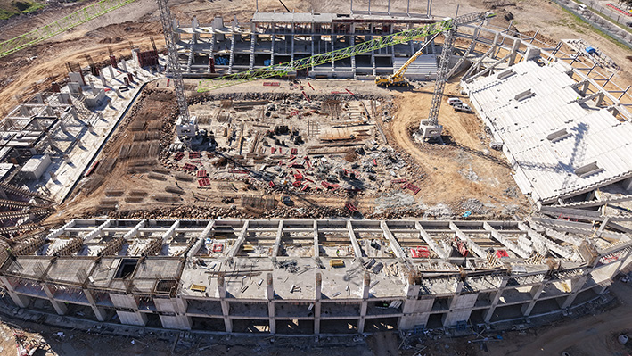 Toplam 2 milyar TL’lik yatırımla hayata geçirilen projede inşaat sahasında yoğun bir çalışma yürütülüyor. Kuzey, doğu ve batı tribünlerinde üçüncü kata ulaşılırken, güney tribünün inşası da hızla ilerliyor. Tribün bloklarının yükselmesiyle birlikte stadyumun silueti her geçen gün daha belirgin hale geliyor.