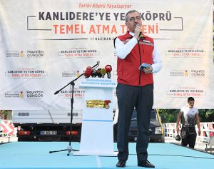 Programın açılış konuşmasını yapan Büyükşehir Belediye Başkanı Hayrettin Güngör, “Sarayaltı – Kanlıdere – Kale bağlantı yolu projemiz kapsamında bugün temel atma törenini gerçekleştirdiğimiz köprümüz, şehir merkezimizin trafik yükünü azaltma bakımından çok önemli bir proje. 30 Milyon TL’lik bir yatırım. Proje kapsamında Kanlıdere Köprüsü’nü de restore ederek yayalaştıracağız. Projemizi hayata geçirmek için 89 günlük bir süre belirledik. Bunun için de inşaat alanımıza bir zaman sayacı koyduk. Sayaç bugünden itibaren 89’dan geriye doğru saymaya başlayacak. İnşallah 89 gün içerisinde yeni köprümüzün açılışını da hep birlikte gerçekleştireceğiz” ifadelerini kullandı.