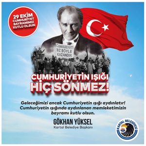 29 Ekim Cumhuriyet Bayramı’nın 99. Yıl kutlamalarına, “Haydi Kartal! Cumhuriyet coşkusunu hep birlikte yaşayalım.” diyerek tüm Kartallı komşularını davet eden Kartal Belediye Başkanı Gökhan Yüksel, “Geleceğimizi ancak Cumhuriyet ışığı aydınlatır! Cumhuriyetin ışığında aydınlanan memleketimizin bayramı kutlu olsun.” ifadelerini kullandı.