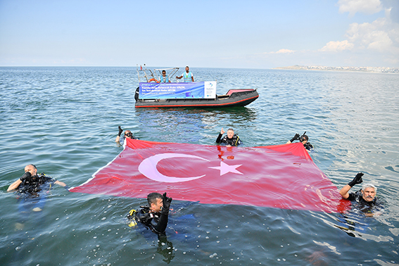 Beylikdüzü Belediyesi, 8 Haziran Marmara Denizi Günü kapsamında Gürpınar sahilinde kıyı ve deniz dibi temizliği gerçekleştirdi. Marmara Denizi’ne kıyısı olan 60 ilçe belediyesinin eş zamanlı olarak düzenlediği etkinlikte toplanan atıkların sergilenmesi ile farkındalık oluşturuldu. Beylikdüzü Belediyesi Nefes Sualtı Dalış Ekibi, Marmara Denizi’nde etkisini gösteren müsilajın deniz dibinde oluşturduğu tabaka sebebiyle derinlerdeki atıklara ulaşamadıklarını belirterek müsilaj sorununa dikkat çekti. Beylikdüzü Belediyesi, 8 Haziran Marmara Denizi Günü kapsamında “Denizler Kolay Kirlenecek Kadar Küçük, Zor Temizlenecek Kadar Büyük” sloganıyla Gürpınar sahilinde farkındalık yaratacak bir etkinliğe imza attı. Marmara Denizi’ne kıyısı olan 60 ilçe belediyesinin eş zamanlı olarak gerçekleştirdiği etkinlikte, kıyı ve deniz dibi temizliği yapıldı. Çevre Koruma ve Kontrol Müdürlüğü’nün organize ettiği programda okullardan gelen öğrenciler, STK’lar ve belediye çalışanlarıyla birlikte kıyıdaki çöpleri topladı. Deniz dibini tarayan Beylikdüzü Belediyesi Nefes Sualtı Dalış Ekibi ise denizden cam şişe, telefon, plastik ambalaj ve metal kutu gibi atıklar çıkardı. Marmara Denizi’nde etkisini gösteren müsilaj sorununa da dikkat çeken dalış ekibi, müsilajın deniz dibinde oluşturduğu tabaka sebebiyle derinlerdeki atıklara ulaşamadıklarını belirtti. Toplanan tüm atıklar sergilendi Programın açılışında konuşma yapan Beylikdüzü Belediyesi Başkan Yardımcısı Mülayim Demirtaş, “Beylikdüzü’nde yaşayanların ne kadar duyarlı olduğunu tüm ülke biliyor. Kirlenmiş dünyayı temizlemek için hep birlikte çaba sarf ediyoruz. Emeği geçen herkese teşekkür ediyorum” ifadelerini kullandı. Beylikdüzü Belediyesi Çevre Koruma ve Kontrol Müdürü Ersin Temel ise “Beylikdüzü’nün 14 buçuk kilometrelik bir kıyı bandı var. Denizimizin suyu her yıl yapılan ölçümlerde çok temiz çıkıyor. Denizler bizim için nefes alanlarımız ve huzurumuz. Kirlilik kaynağında temizlenir. Biz kirletmezsek ve doğayı korursak emin olun doğa bizlerden çok daha cömert. Biz sizlerle varız ve sizlerle birlikte ülkemizi koruyup kollayacağımıza eminiz” şeklinde konuştu. Toplanan tüm atıkların sergilenmesiyle birlikte farkındalığın artırıldığı program, dalış ekibinin denizde Türk Bayrağı ile verdiği pozla noktalandı.