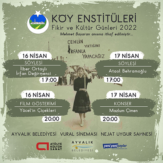 Geçtiğimiz yıl Atölye Kültür Sanat organizasyonu ve Ayvalık Belediyesi ev sahipliğinde ilki yapılan Köy Enstitüleri Fikir ve Kültür Günleri, Köy Enstitülerinin 82. kuruluş yıldönümü olan 16 -17 Nisan 2022 tarihlerinde Ayvalık’ta ikinci kez düzenlenecek. Türkiye’de Köy Enstitüleri ile ilgili düzenli olarak yapılan tek etkinlik dizisi olan organizasyonda bu sene de ülkenin önde gelen tarihçi, yazar ve sanatçıları Ayvalık’ta iki gün boyunca Köy Enstitülerini yine gündeme taşıyacak. İlk gün konukları İlber Ortaylı ve İrfan Değirmenci 16 Nisan’da Türkiye’nin en önemli tarihçilerinden İlber Ortaylı ve gazeteci İrfan Değirmenci’nin ‘’Köy Enstitülerinin Tarihsel Süreci’’ konulu söyleşisiyle başlayacak olan organizasyon gün sonunda ‘’Yücel’in Çiçekleri’’ adlı belgesel film ile devam edecek. Son gün konukları usta yazar ve şair Ataol Behramoğlu ve Mazlum Çimen 17 Nisan günü usta şair ve yazar Ataol Behramoğlu’nun ‘’Köy Enstitülerinde Kültür ve Sanat’’ adlı söyleşisi ve şiir dinletisi ile başlayan organizasyon, halk müziğinin önemli ismi Mazlum Çimen konseri ile son bulacak. İki gün boyunca yapılacak tüm etkinlikler Ayvalık Belediyesi Vural Sineması Nejat Uygur Sahnesi’nde gerçekleştirilecek. Bu Yıl ki etkinlikler Mehmet Başaran anısına! Her yıl Köy Enstitülerinin kuruluş yıldönümünde gerçekleştirilen Fikir ve Kültür Günleri bu yıl yine Köy Enstitüleri ile sembolleşen bir isme ithaf edilecek. Geçtiğimiz yıl Talip Apaydın adına ithaf edilen organizasyon bu yıl yine sembol isimlerden Mehmet Başaran anısına ithaf edilecek. Mehmet Başaran Kimdir? Köy edebiyatı hareketinin şiirdeki önemli temsilcilerinden biri olan şair, eğitimci ve yazar Mehmet Başaran, 1926’da Kırklareli’nin Lüleburgaz ilçesindeki Ceylanköy’de doğdu. Kepirtepe Köy Enstitüsü’nü (1943) ve Hasanoğlan Yüksek Köy Enstitüsü’nü bitirdi (1946). Köy Enstitülü Hatun Birsen Başaran ile evlendi. Askerliğini yaparken Yedeksubay Okulu’ndan çavuşa çıkarıldı. Köy enstitüsü öğretmenliği, gezici başöğretmenlik, ilkokul öğretmenliği, Türkçe öğretmenliği yaptı ve Türkiye Öğretmenler Sendikası’nın (TÖS) kuruluş çalışmalarına katıldı, 1979’da emekli oldu. 1950’li ve 1960’lı yıllarda güçlenen köy edebiyatı hareketinin şiirdeki önde gelen temsilcilerinden birisidir. İlk şiiri Köy Enstitüleri Dergisi’nde yer aldı. Adam Sanat, Gösteri, Kıyı, Varlık, Yansıma, Yazko Edebiyat, Yeditepe, Yeni Biçem, Yeni Ufuklar ve Yücel gibi dergilerde şiirleri yayınlandı. Toplumcu düşünceyi didaktizme düşmeden şiirlerine sindirmeyi bildi. Şiirlerinde direnme ve umut temalarını iç içe işledi. Aynı temalar gözlem ve deneyimleriyle bütünleşmiş olarak Ahlat Ağacı ve Nisan Haritası’ndan sonra şiir kitaplarına damgasını vurdu. 27 Haziran 2015 tarihinde hayatını kaybeden Başaran’ın cenazesi doğduğu yer olan Ceylanköy’de toprağa verildi. Eserleri Ahlat Ağacı, 1953, Çarığımı Yitirdiğim Tarla, 1955, Karşılama, 1958, Nisan Haritası, 1960, Aç Harmanı, 1962, Kocakent, 1963, Zeytin Ülkesi, 1964, Pıtraklı Memleket, 1969, Sürgünler, 1970, Tonguç Yolu, 1974, Gök Ekin, 1975, Elif Diye Bir Türkü, 1976, Mehmetçik Mehmet, 1978, Meşe Seli, 1982, Günler Tuz Rengi, 1986, Sabahattin Eyüboğlu ve Köy Enstitüleri, 1990, Sis Dağı’nın Başında Borana Bak Borana, 1990, Giz Kokan Suskunluk, 1991, Yasaklı – Acının ve Sevginin Yurttaşı, 2. baskı 2003, Köy Enstitüleri Özgürleşme Eylemi, Kuşatılmış Yaşam Günaydın Aşk, 2006, Eylülün Kızgın Soluğu, 2007, Yüreğinin Sesi Zeytin Ülkesi, 2007, Öğretmenim Hasan Âli Yücel, 2009,