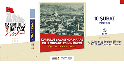 Kahramanmaraş Büyükşehir Belediyesi tarafından, Milli Mücadelenin 102. yıl dönümü kapsamında düzenlenen etkinlikler hız kesmeden devam ediyor. Etkinlik takvimi kapsamında 10 Şubat Perşembe günü (yarın) iki konferans düzenlenecek. Saat 14.00’da İstiklal Üniversitesi İnsan ve Toplum Bilimleri Fakültesi Konferans Salonu’nda gerçekleştirilecek programın konuğu Öğr. Gör. Dr. Fatih Yavuz olacak. ‘Kurtuluş Savaşı’nda Maraş Milli Mücadelesinin Önemi’ konulu konferansta Maraş’ın Milli Mücadelesi, Milli Mücadele kahramanları, Maraş’ın diğer Anadolu şehirlerine verdiği ilham gibi pek çok konu masaya yatırılacak.