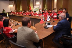 1 idareci, 7 antrenör ve 50 sporcuyla Kahramanmaraş’ta kampa giren Masa Tenisi Yıldız-Genç Milli Takımı, kamp boyunca verdiği destekten ötürü teşekkürlerini iletmek amacıyla Onikişubat Belediye Başkanı Hanefi Mahçiçek’i ziyaret etti.