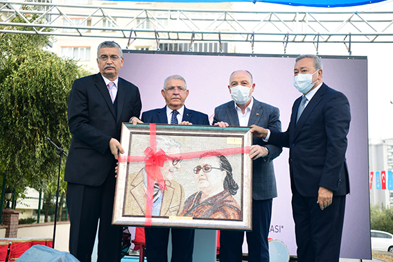 İçişleri Komisyon Başkanımız ve Milletvekilimiz Celalettin Güvenç, Sayın Vali Ömer Faruk Coşkun ve Başkan Mahçiçek, Alper Topçuoğlu’na Onikişubat Belediyesi tarafından yaptırılan anne babasının resminin mozaik tablosunu takdim ettiler.