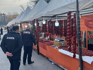 Ekipler, son denetim sırasında Yöresel Çarşı olarak kurulan bir pazarda sucuk satışı gerçekleştiren firmayı kapsamlı incelemeye aldı.