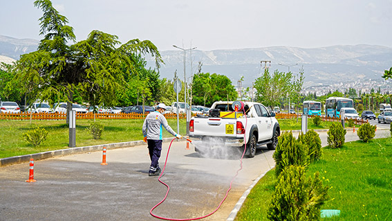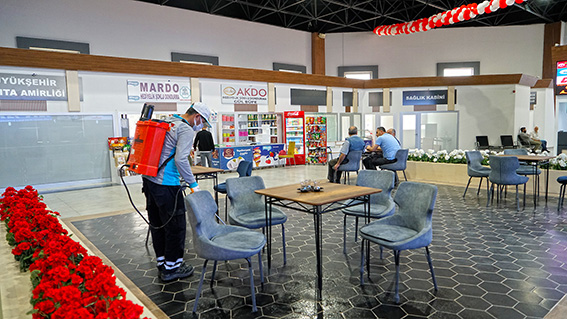 Çevre Koruma ve Kontrol Dairesi Başkanlığı’ndan dezenfeksiyon çalışmalarına ilişkin yapılan açıklamada, “Bayram öncesi şehir genelinde bulaş riskini en aza indirerek vatandaşlarımızın daha steril bir ortamda ibadetlerini yerine getirmeleri ve ulaşımlarını sağlamaları için camilerimizde ve şehirlerarası otobüs terminalinde dezenfeksiyon çalışması gerçekleştiriyoruz. Yoğunluğun meydana gelebileceği alanlarda gerçekleştirdiğimiz çalışmalarla, temas yoluyla oluşabilecek bulaş riskinin önüne geçmeyi hedefliyoruz” ifadelerine yer verildi.
