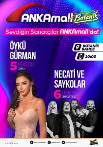 5 Ağustos Cuma akşamı Öykü Gürman ile ANKAmall’da başlayan yıldızlar geçidi, 6 Ağustos’ta Necati ve Saykolar ile devam edecek;Başkentliler ağustos ayı boyunca unutulmaz akşamlar yaşayacak
