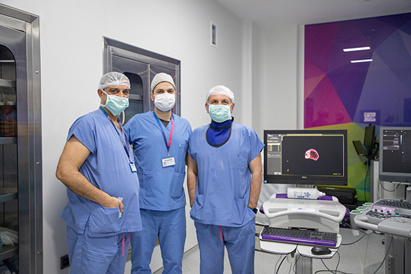 Op. Dr. Emir Akıncıoğlu, sözlerine şöyle devam etti: “MR Füzyon Biyopsi cihazıyla klasik biyopside atlanabilecek olan kanser odakları başarılı şekilde tespit ediliyor ve tam olarak belirlenen hedef noktalardan örnekler alınabiliyor. Bunun için önce MR filmi çekiliyor, sonrasında kanser şüpheli yerler belirlenerek füzyon biyopsi cihazına görüntüler yükleniyor. Ardından işlem esnasında gerçek zamanlı olarak ultrason ve MR görüntüleri örtüştürülüyor. İşlem sırasında şüpheli yerlerden tam isabet ile örnekleme yapılabiliyor. Hastalıklı prostatlı dokularının gözden kaçırılması riskini neredeyse sıfıra indiriyoruz. Bunun için teknoloji ve tecrübe gerekiyor. Biz de ekip olarak son bir yıl içerisinde 100’den fazla hastaya başarıyla bu işlemi uyguladık. En yüksek standartlarda hastalarımıza hizmet vermeye de devam ediyoruz”